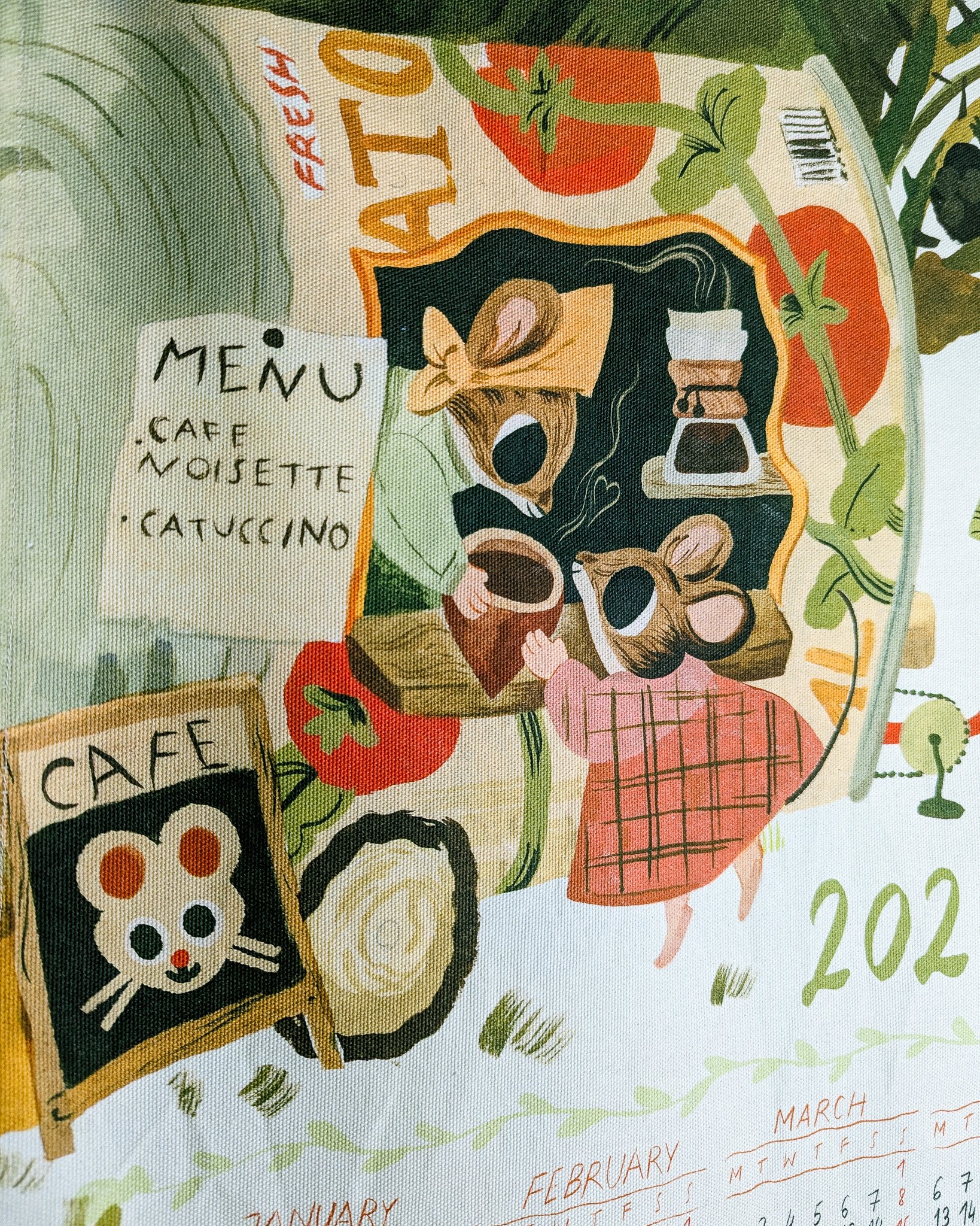 Dress up your home for the upcoming year with this awesome limited edition kitchen towel calendar! Reproduction of a gouache painting on 100% cotton.